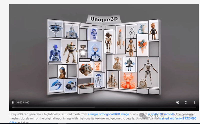 近日,Github上发布了一个类似于Tripo的模型–aiuni,它是由一个清北背景的AI团队,主要用AI将图片转3D,该项目地址:https://wukailu.github.io/Unique3D/。目前该团队也上线了内测C端产品Aiuni,和开源模型Unique3D主要的区别在于:Aiuni的数据集涵盖了更多高质量高审美的商用数据,因此生成的效果会更精美;此外,比起Web Demo也有更产品化人性化的操作页面设计,更适合绝大多数有3D生成需求的创作者。网址是https://aiuni.ai/,