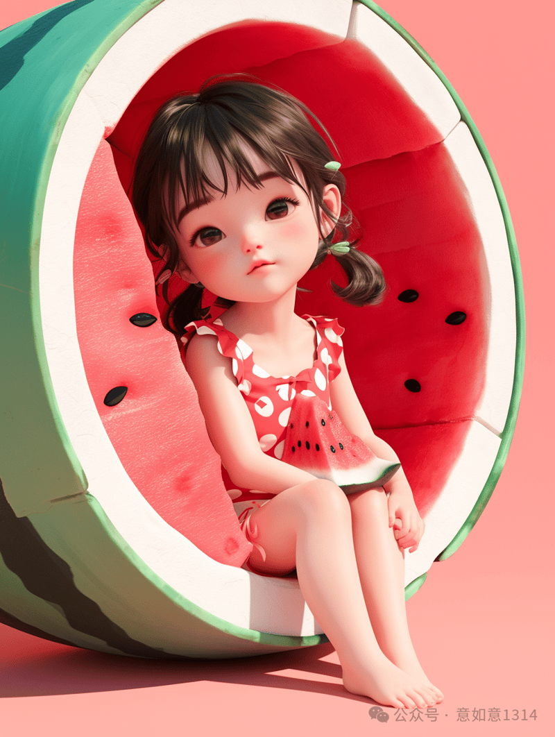 小萌娃的西瓜头像,让人忍不住想咬一口,感受那份清凉与甜蜜。