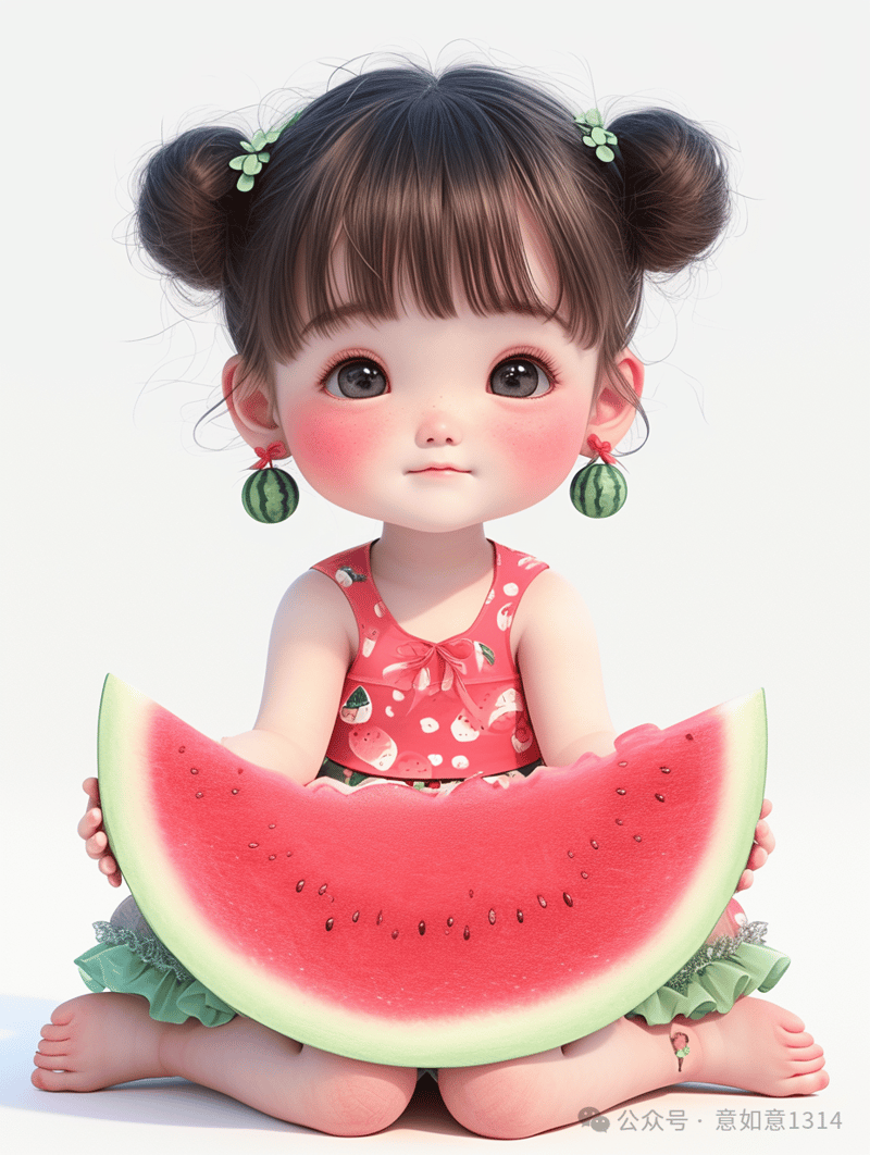 小萌娃的西瓜头像,是夏日里最治愈的存在。