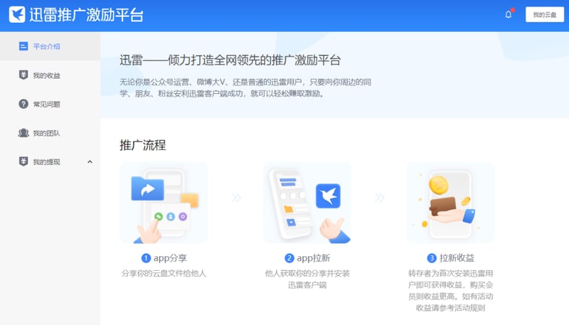 一个比较小众的网盘,邀请新用户,用户7天内购买会员,然后可以得到返佣。
