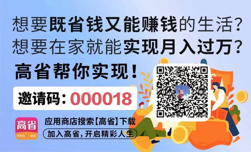 大家好!我是高省APP最大团队&联合创始人浮沉导师!【高省】APP网购优惠券免费领,分享还能赚钱。【高省】是一个自用省钱佣金高,分享推广赚钱多的平台。佣金更高,模式更好,终端用户不流失。0投资,稳定可靠,百度有几百万篇报道,期待你的加入。应用市场下载【高省】邀请码000018(本邀请码为超级邀请人邀请码),注册送2皇冠会员,送万元推广大礼包,提供专业一对一辅导,全程免费,教你打造百万团队。