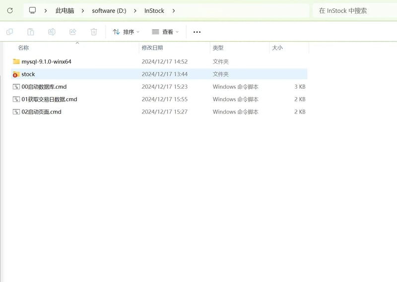 其他路径需修改配置文件"InStock\mysql-9.1.0-winx64\my.ini"